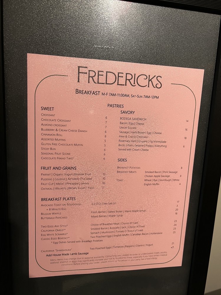 Fredericks invites you to savor a morning of comfort and class, making it a must-visit for breakfast lovers.